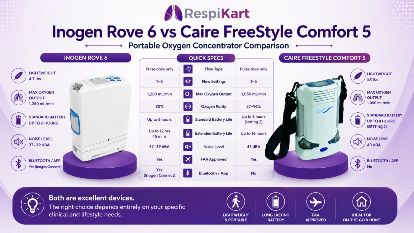 Inogen Rove 6 vs Caire FreeStyle Comfort 5: The Ultimate Portable Oxygen Concentrator Comparison (2026)