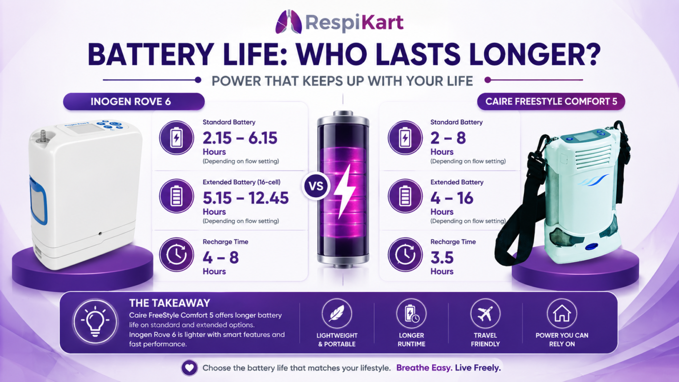 In this detailed comparison, we break down every key feature — weight, battery life, oxygen output, technology, and ease of use — so you can make the right choice. And if you are in Delhi or Delhi NCR, Respikart makes it even simpler: rent either device without the burden of a large upfront cost.