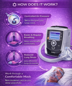 The machine works by delivering controlled air pressure through a mask. Therefore, it supports natural breathing without any invasive procedure.