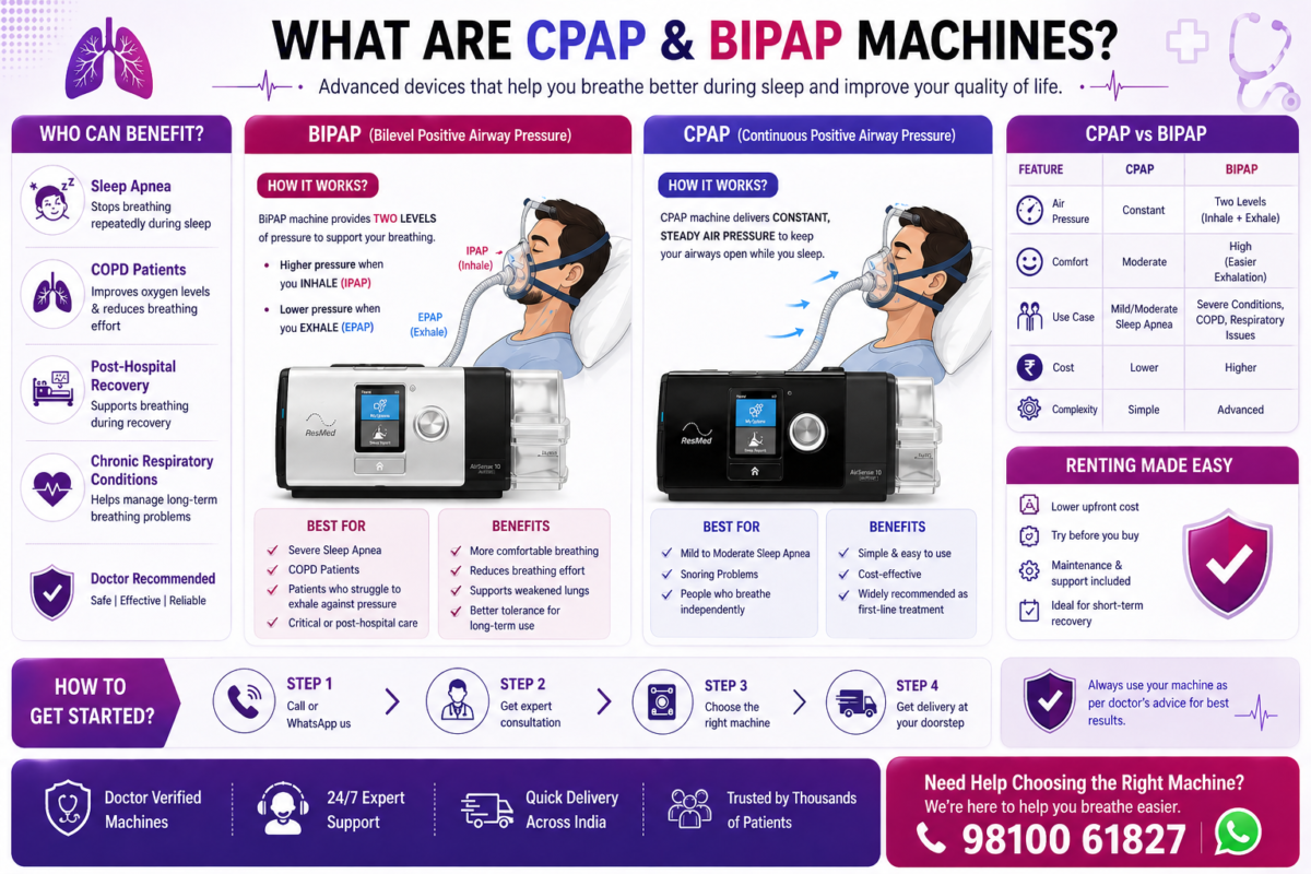 CPAP & BiPAP Machine on Rent in Delhi – Best Prices, Fast Delivery (2026) Struggling with breathing issues during sleep? Whether it’s Sleep Apnea, Chronic Obstructive Pulmonary Disease, or recovery after illness—you can get CPAP & BiPAP machines on rent in Delhi with fast doorstep delivery. What Are CPAP & BiPAP Machines? Both are essential […]