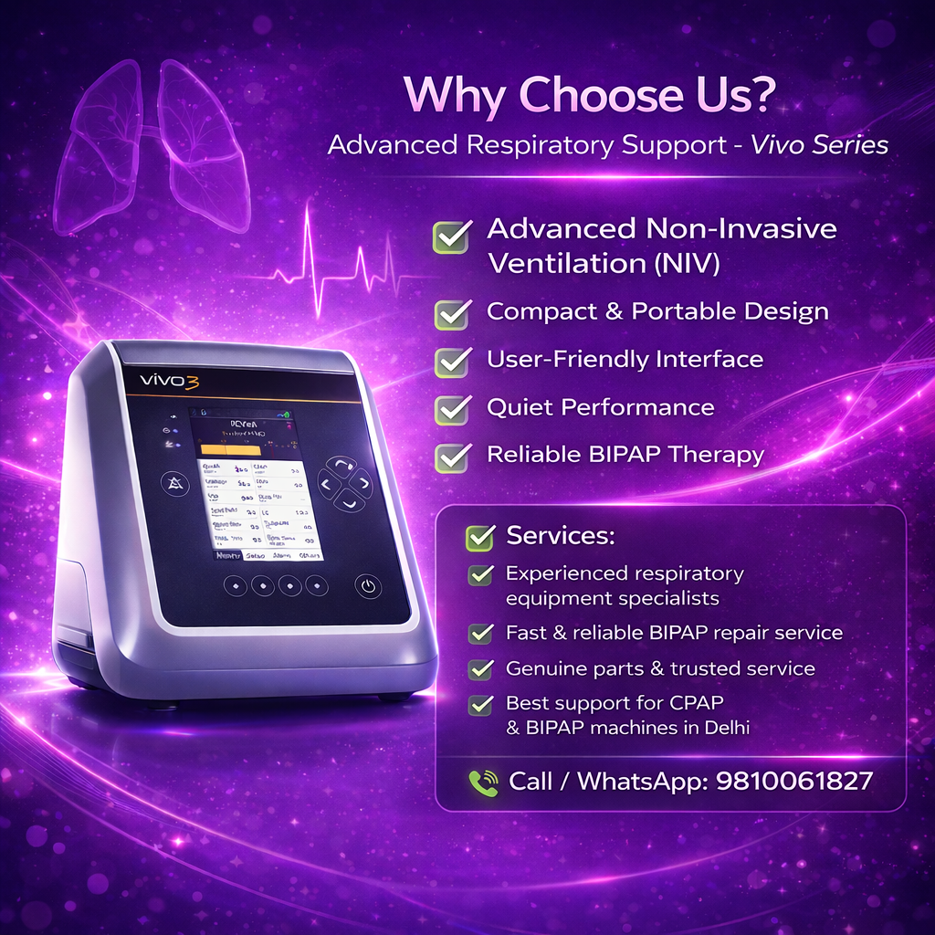 If you are looking for a BiPAP machine in Delhi, need BiPAP machine servicing, or require a non-invasive ventilator for home use, the Breas Vivo-3 offers a trusted and efficient solution.