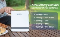 - Double battery with up to 10 hours backup combined